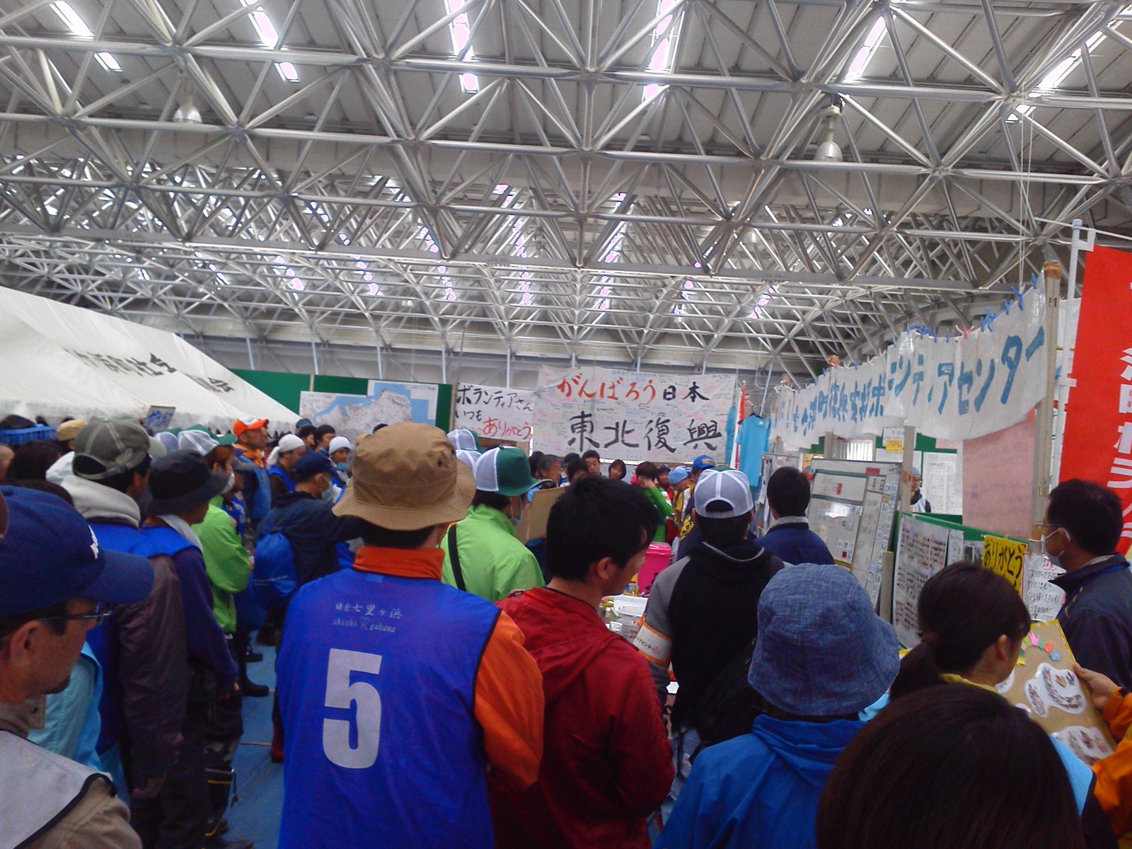 七ヶ浜内で津波被害を受けた田んぼは140丁(1丁は109m)だそうで、今回支援隊40名を含む総勢120名のボランティアで約1丁分のがれきを撤去しました。従って全ての作業を終えるのにまだ140日位はかかると言う事です。その後また重機で掘り返し、またボランティアの手によりがれき撤去を繰り返すと言う気の遠くなる作業を経ないと田んぼの復活は出来ないそうです。まだまだやる事は山ほどあります。